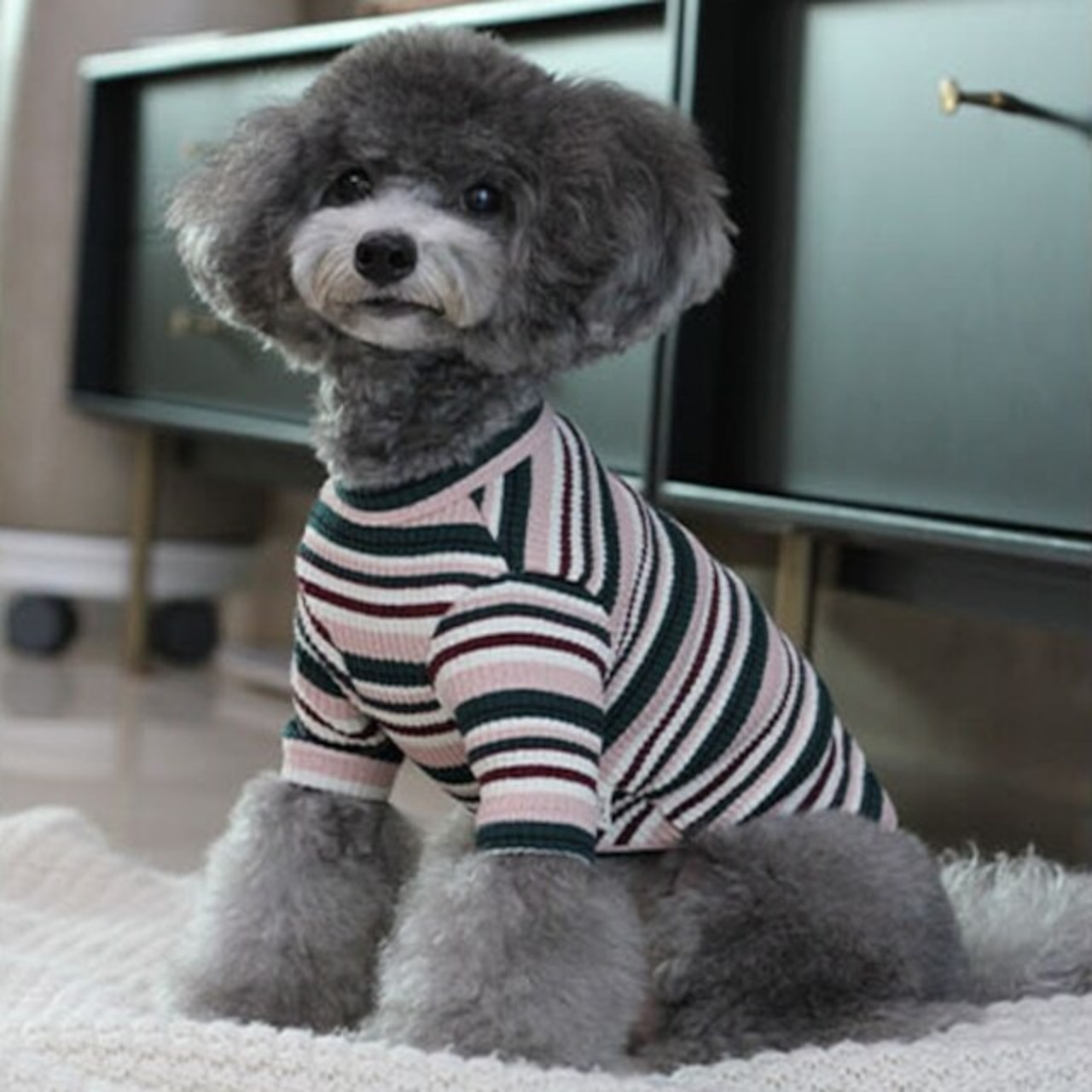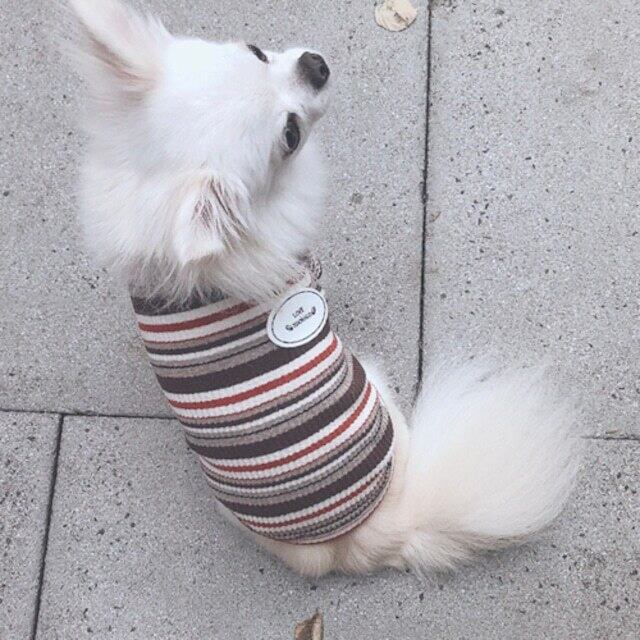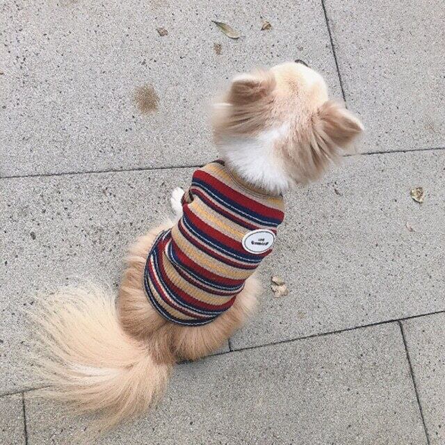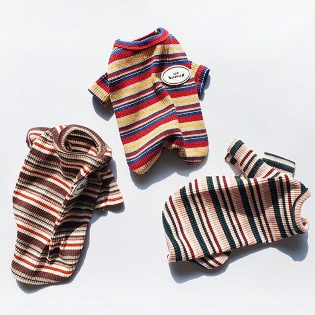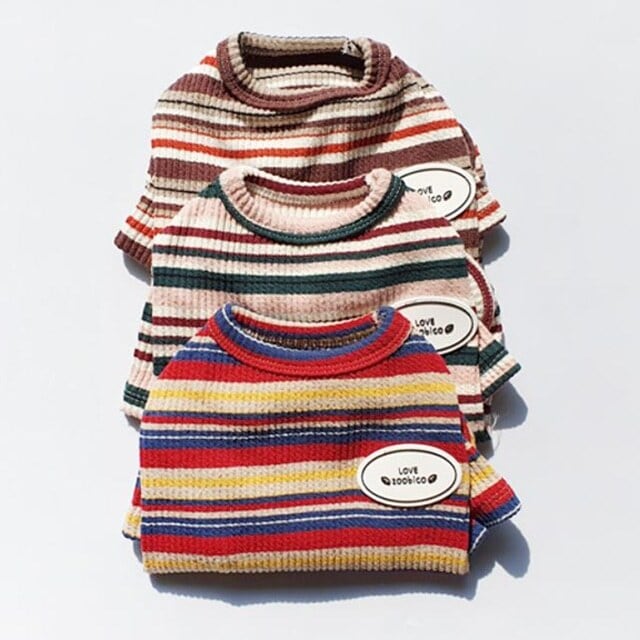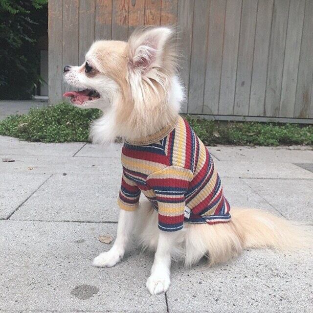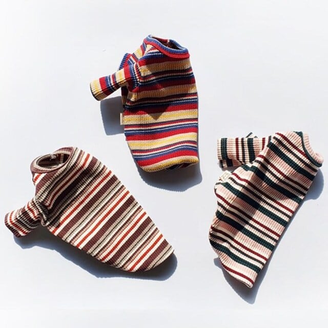 伸縮性のあるコットンを使用、表面感のあるリブ編と絶妙なカラーのマルチボーダーでとても気やすいオシャレなカットトップス。