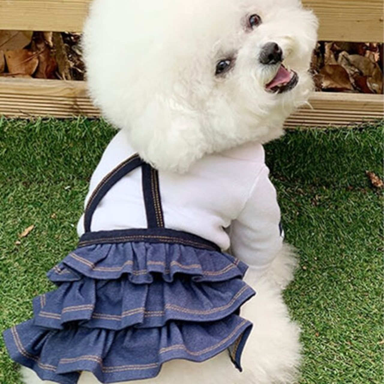 ブルーデニムのサスペンダーフリルスカートとオールインワンの2タイプをご用意いたしました。素材はポリエステルカットソーで伸縮性がありとっても着心地がよく、単品着用の他、季節ごとにアウターやインナーとのコーディネートをお楽しみいただけるオールシーズンタイプのデニムです。
