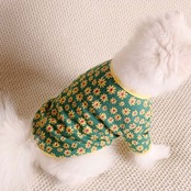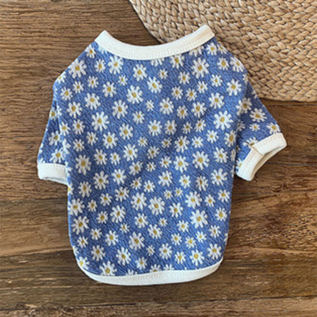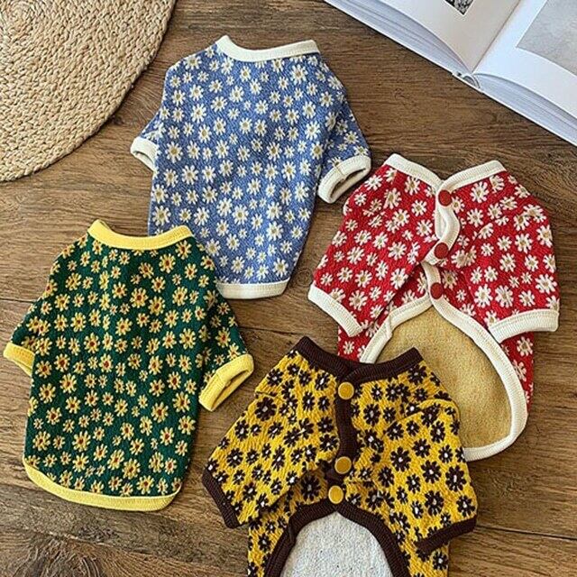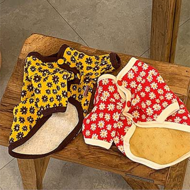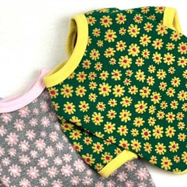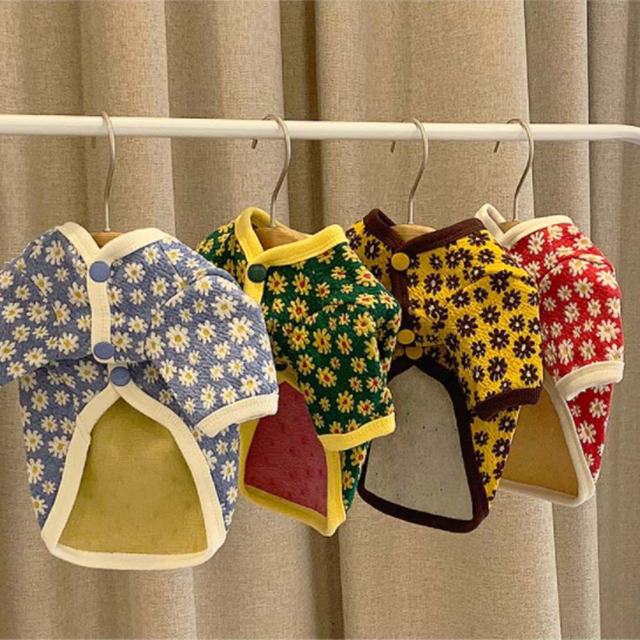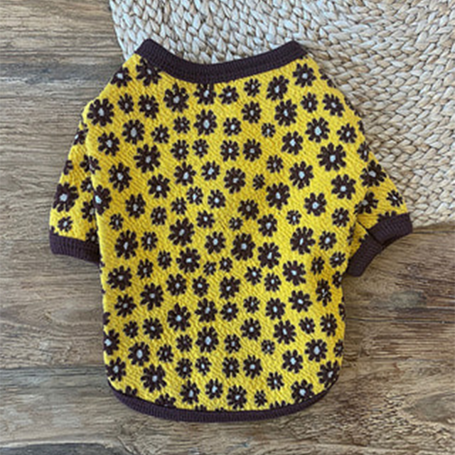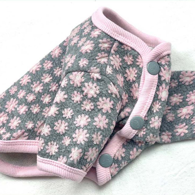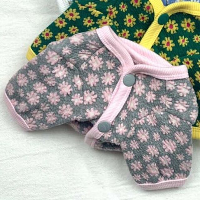 デイジーフラワープリントのカーディガン。伸縮性のある素材のカーディガンでフロントボタン明きで楽に着られます。衿ぐり、裾、袖口にはプリントに合わせた配色トリミングがポイントです。