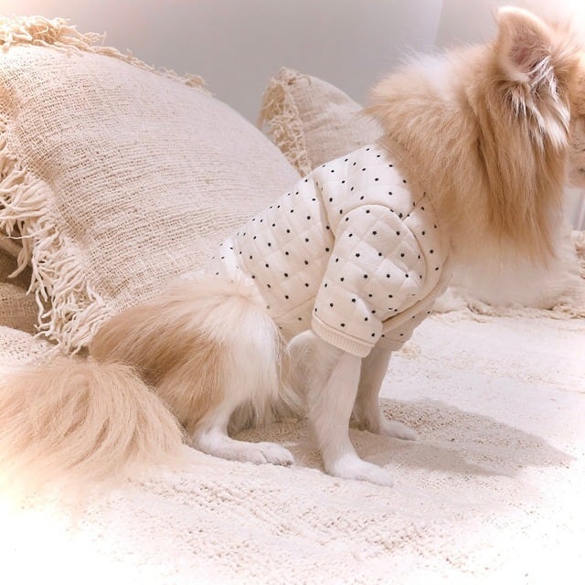 軽くて暖かいスタードットのキルティングジャケット。首元がノーカラーでタートルやパーカーとのコディネートも可能。また一枚でご着用いただいたら春先まで使用できる万能アイテムです。