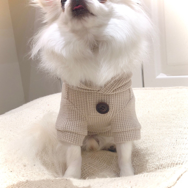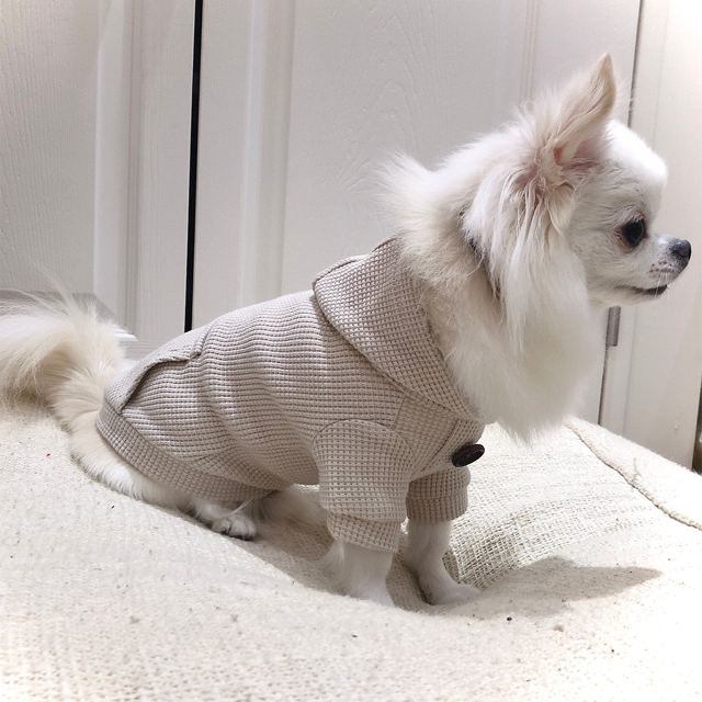 ウッドボタンがポイントのソフトワッフルパーカー。伸縮性のあるソフトワッフルでストレスフリーな着心地のパーカーです。