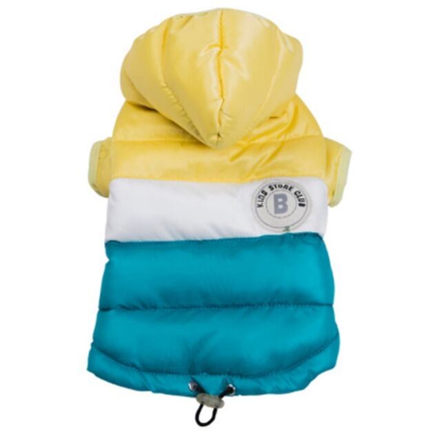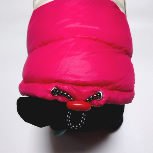 バイカラーのコントラストがとってもオシャレなフーディダウンジャケット。軽いソフト綿入りの裏付きダウンジャケット、フード、袖口は伸縮パイピング仕立、ウエストはドットボタンで裾回りはゴムヒモとストッパーでフィット感が調整可能、フード後ろにはリードホールとフードを止めるドットボタンも便利なダウンジャケットです。